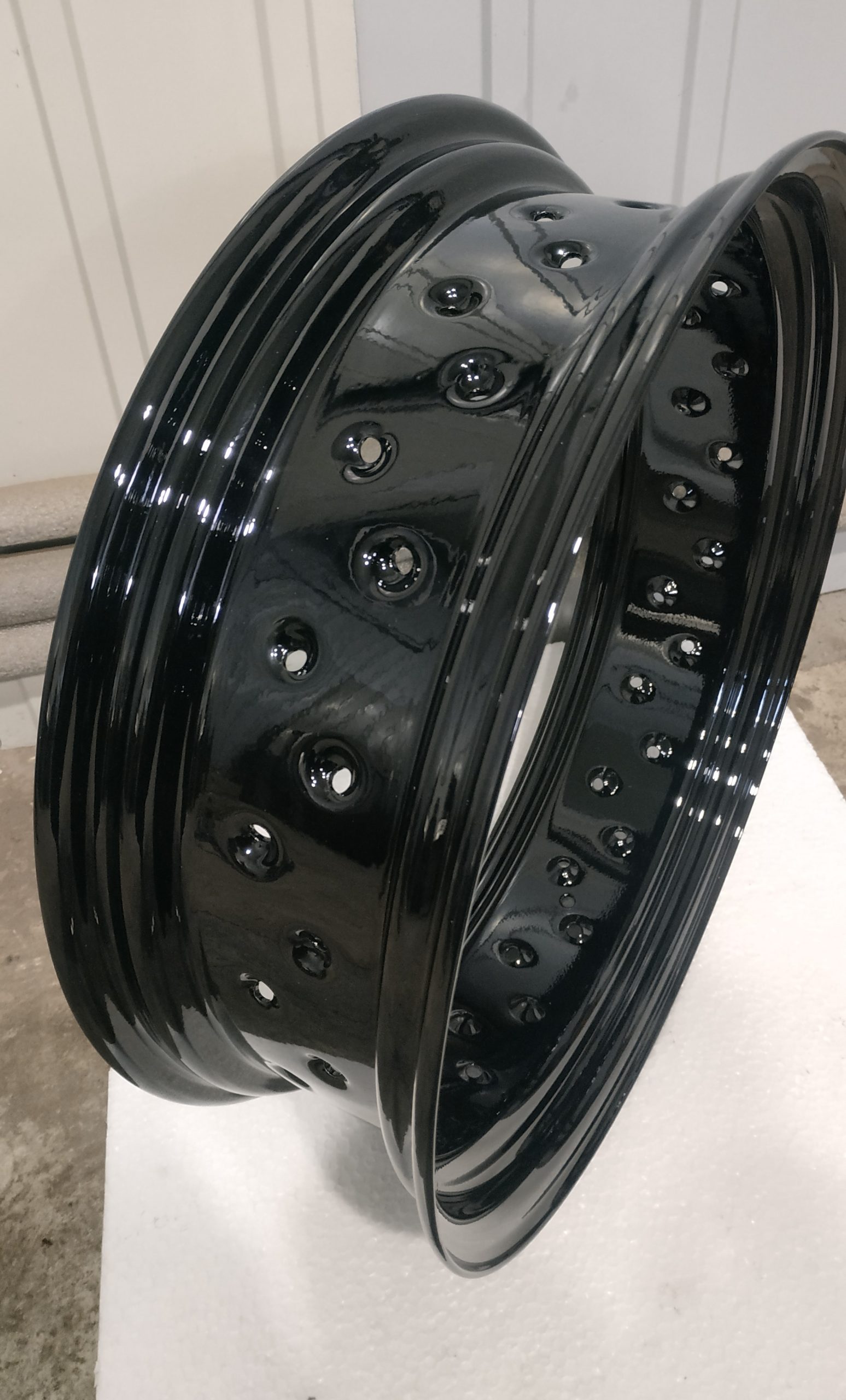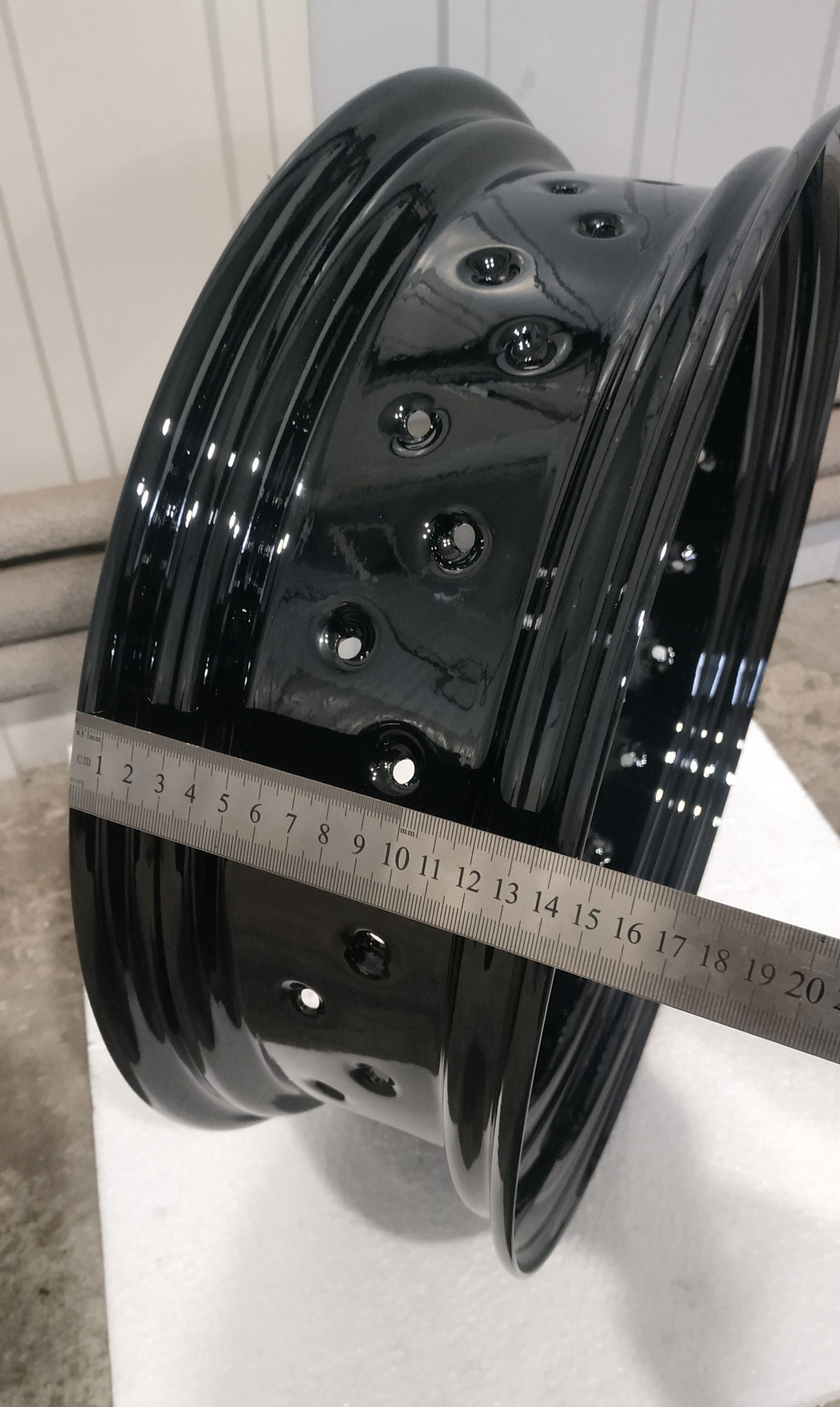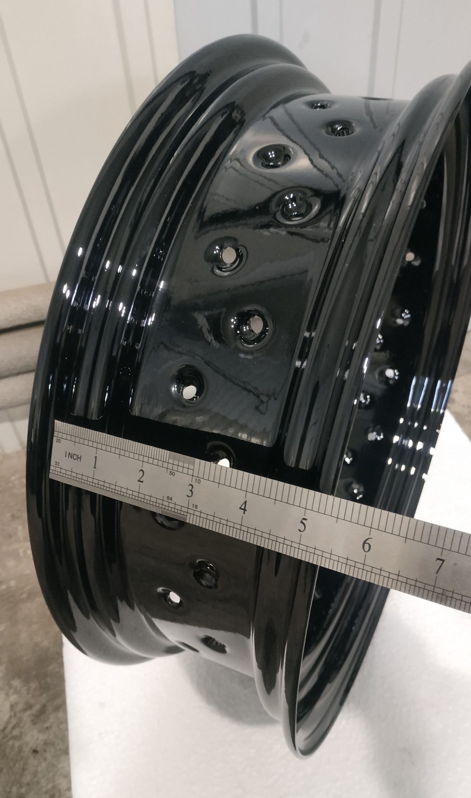 We manufacture this specialized wide rim from high-strength cold-rolled steel. Therefore, it remains exceptionally reliable and easy to work with during the complex wheel lacing process. You can choose between two professional options for your unique build. For example, the painted version arrives with a protective industrial-grade powder coating. However, the raw (unpolished) version is better for custom fabricators. This is because they can apply their own unique paint, chrome plating, or specialized coating in their own workshop. ⛓️ Since the metal surface is clean, it is ready for your project immediately. Browse our rim category for more dimensions. Moreover, check our fabrication blog for professional building tips.