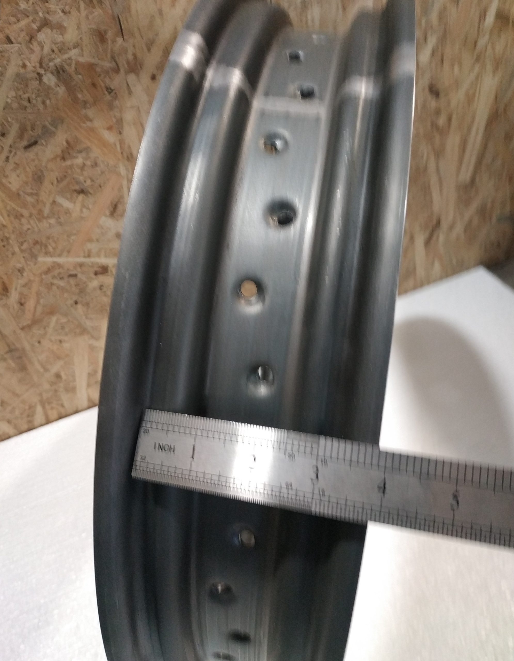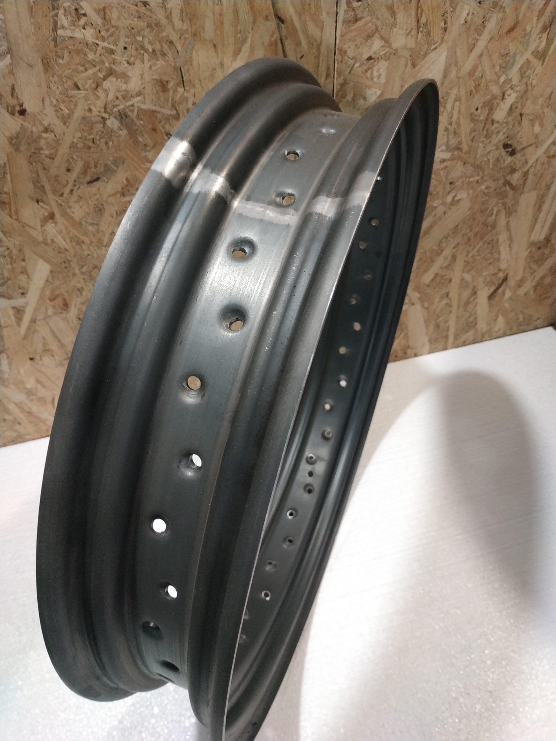 We manufacture this rim from high-strength 2.5 mm steel. This thickness ensures maximum structural rigidity and safety on the road. 🔧 You can choose between two professional finishes. The raw steel version is ideal for custom painting or chrome plating. The black powder coated version provides excellent protection against corrosion and scratches. It comes with precision-drilled holes for standard heavy-duty spokes. ⛓️ Browse our 16-inch category for other widths. Check our fabrication blog for technical tips on wheel lacing and truing.