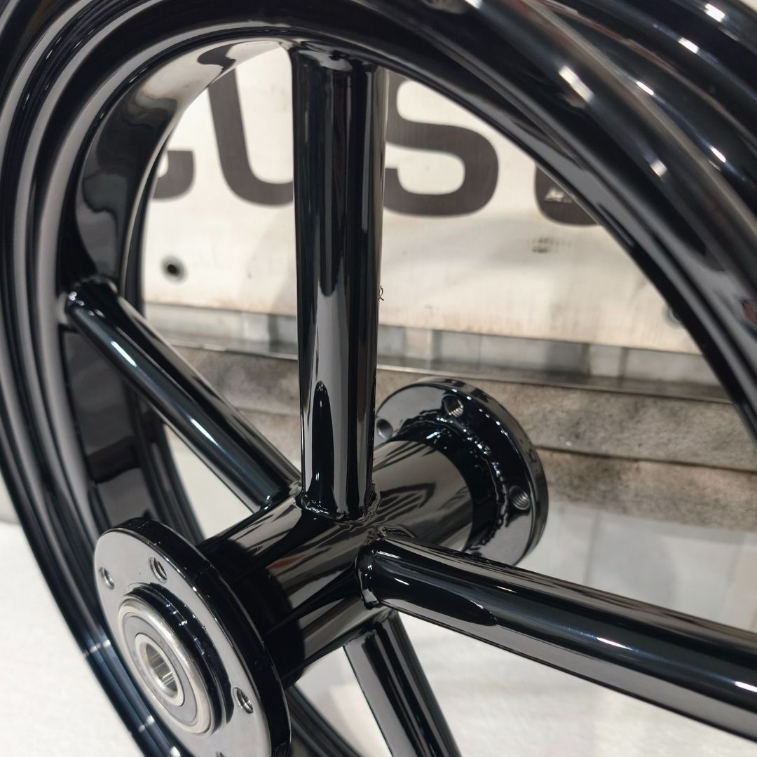 Handcrafted by Kovalcustom, this wheel is made from high-grade steel with a 3 mm tube wall thickness and a 2.5 mm rim thickness, providing unmatched durability, balance, and that unmistakable vintage Invader look loved by Harley and chopper enthusiasts worldwide.